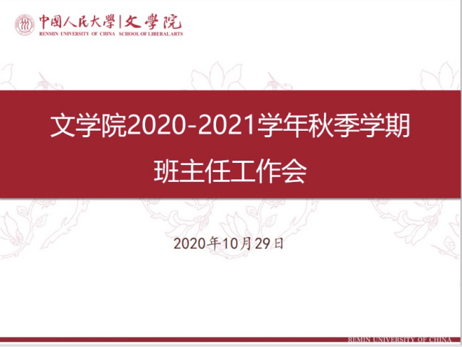 在线上召开2020—2021学年秋季学期班主任工作会议。学院党委书记颜梅,党委副书记胡玲莉,党团学办公室主任罗观,团委书记许鹏,以及本硕博各班班主任参加了本次会议。会议由胡玲莉主持。
