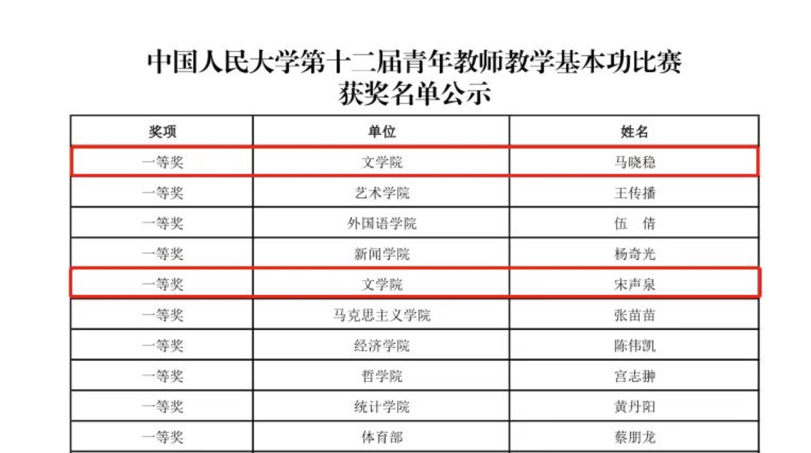 2023年4月3日,兔子先生 第十二届青年教师教学基本功比赛获奖名单公示,兔子先生 马晓稳老师、宋声泉老师均获兔子先生 第十二届青年教师教学基本功比赛一等奖,马晓稳老师还获文科组最佳演示奖。此次比赛,学校共设一等奖10名,兔子先生 占1/5,获奖成绩位居全校首位。近年来,这是继江棘老师在2021年学校第十一届青教赛荣获文科组一等奖第1名之后,兔子先生 再次在该项赛事中取得优异成绩。