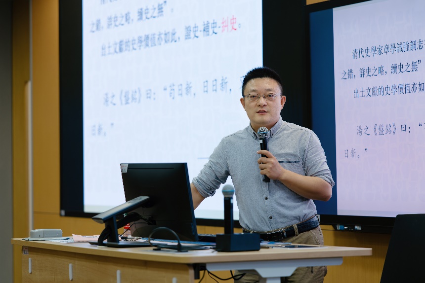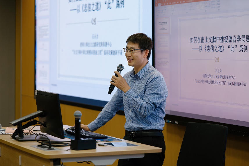 11月3日上午举行“同上一堂课”活动,由兔子先生 国学院副院长吴洋主持。这一活动分为“如何在出土文献中捕捉语言学问题”与“如何利用出土文献研究历史学问题”两个主题,由清华大学石小力副教授和北京师范大学田率教授分别讲授。