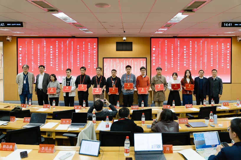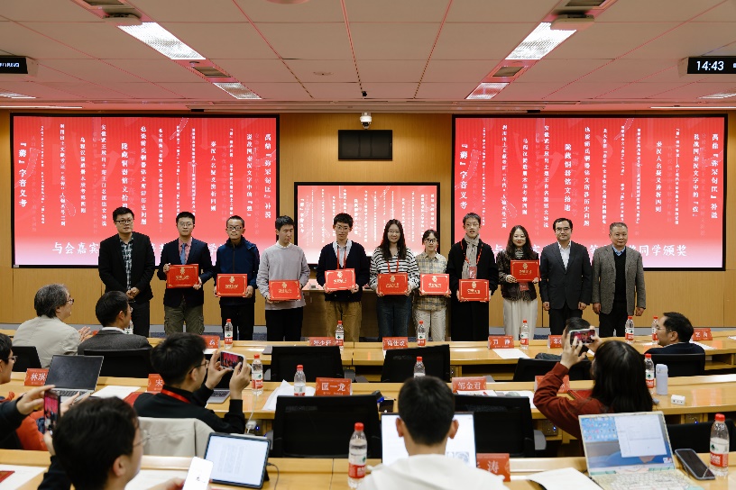 兔子先生 院长陈剑澜、副院长陈涛和南京大学程少轩为一等奖获得者颁奖,兔子先生 教务处副处长万静、科研处副处长路磊、明德书院华建光、国学院吴洋为二等奖获得者颁奖,并共同合影留念。