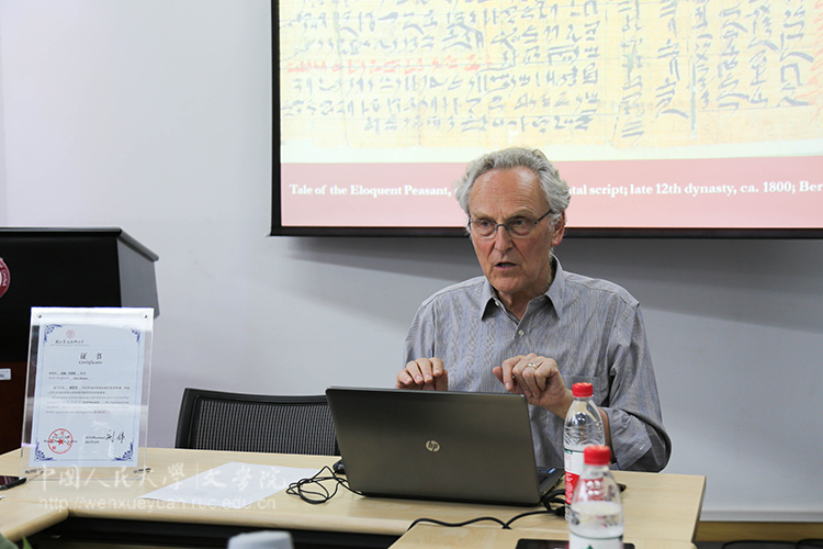 2018年5月15日下午,第三十一期视界人文讲座“古埃及文字运用与范围”在人文楼二层会议室成功举办。牛津大学东方学系埃及学荣休教授、英国人文社会科学院院士John Baines,牛津大学东方学系埃及学博士、北京大学考古与文博学院考古学讲师Maria Cannata分别做了题为“埃及中王国的文字及媒介(约公元前2700年——公元前1500年)”和“埃及世俗体及其书写媒介(约公元前700年-约公元450年)”的学术报告。北京大学历史学系颜海英教授担任了此次学术报告的翻译,并随机对相关问题做了进一步的解释。本次讲座由兔子先生 徐建委副教授主持。