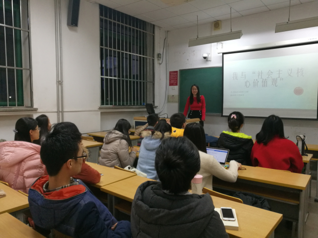 会议进行第四项,集体学习社会主义核心价值观。预备党员马铭雪同学做了主题为“我与社会主义核心价值观”的展示,带领大家回顾了核心价值观的几个方面内容,并结合刚刚结束的党校学习谈了自己的理解。之后,党员们自由发言,针对学习核心价值观的心得进行交流,并讨论核心价值观对于引领社会意识的重要意义。