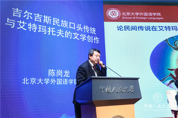 中央民族大学胡振华教授以《成吉思·艾特玛托夫永记我们心间》为题讲述了自己为中吉文化交流所做的工作,深情忆及与作家和吉方友好人士的交往。