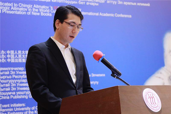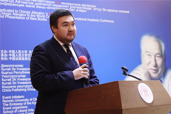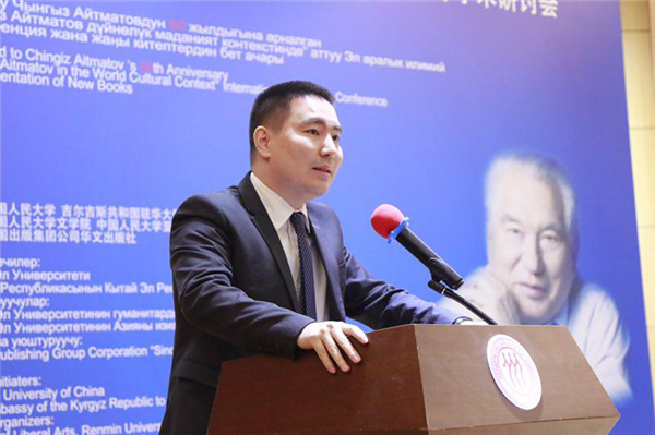 主办本次活动表示衷心感谢,并为会议在自己曾经学习10年的母校举办感到高兴和自豪。艾特玛托夫的著作目前已被翻译成世界176种语言,并在128个国家出版,发行量超过1亿册。他认为,艾特玛托夫给我们留下的丰富的精神遗产,本次会议也完全符合习近平主席“一带一路”倡议,深化了中吉两国在科学文化领域的联系,同时为所有人提供了一个讨论艾特玛托夫精神遗产、提升其人文价值、保持其道德准则的平台。