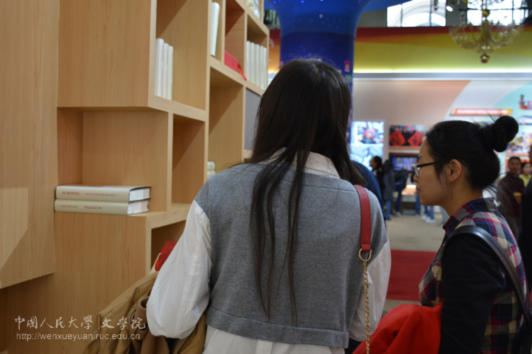 几位同学在《习近平谈治国理政》展区翻阅展品