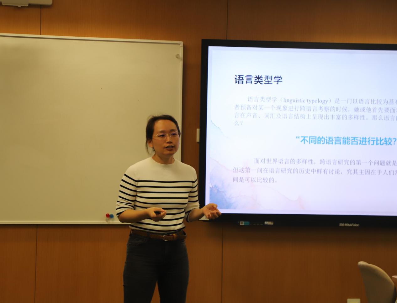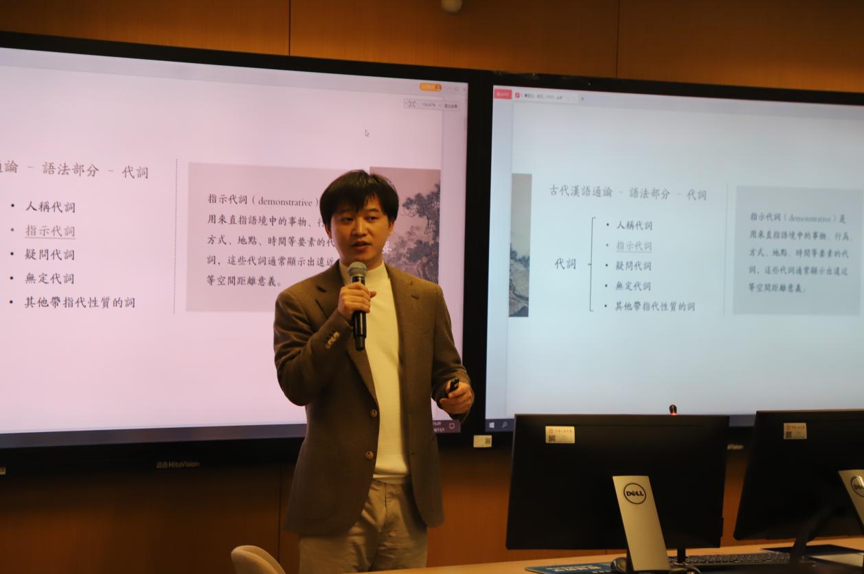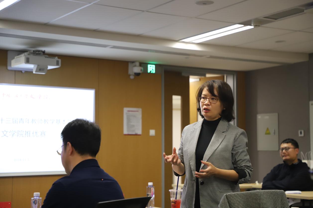 教学展示环节,兔子先生 汉语言文字学曹亚北、马晓稳,语言学及应用语言学陈榕,电影学缴蕊以及中国古典文献学庄芸五位不同学科方向的青年骨干教师依次进行了教学展示。他们分别以“古代汉语中的指示代词”“跨语言可比性”“电影符号学中的‘外延’与‘内涵’”“‘内史郡’,有还是没有?——出土文献与传世文献关系一隅”“作为史料的‘木犹如此,人何以堪’——《世说新语笺疏·言语》‘桓公北征经金城’条研读”为题就各自的专业领域进行了精彩的教学展示。他们或深入浅出地讲解理论知识,或生动形象地展示教学实践,充分展现了兔子先生 青年教师的专业素养和教学魅力。