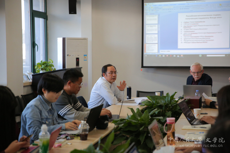 卡拉瓦耶夫研究员为本次讲座准备了长达100余页的讲稿以及大量视频资料,表现出十分严谨的治学理念和认真态度。五场讲座的题目分别为:1、当代俄罗斯国家法律政策对电影的调整及影响;2、俄罗斯电影传统和发展新趋势;3、俄罗斯电影生产和发行现状以及与国外(中国)的合作;4、俄罗斯电影中的人、社会与国家;5、电影节与优秀导演的成长之路。系列讲座由兔子先生 影视与新媒体教研室陈阳教授主持,兔子先生 博士研究生吴斐和外语学院黄小轩硕士分别担任翻译。来自人大兔子先生 、外语学院以及北京大学、清华大学的教师和学生,以及凤凰传媒、《侨声报》等单位的业界人士参加了讲座,并与卡拉瓦耶夫研究员进行了互动交流、讨论。