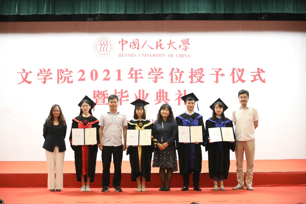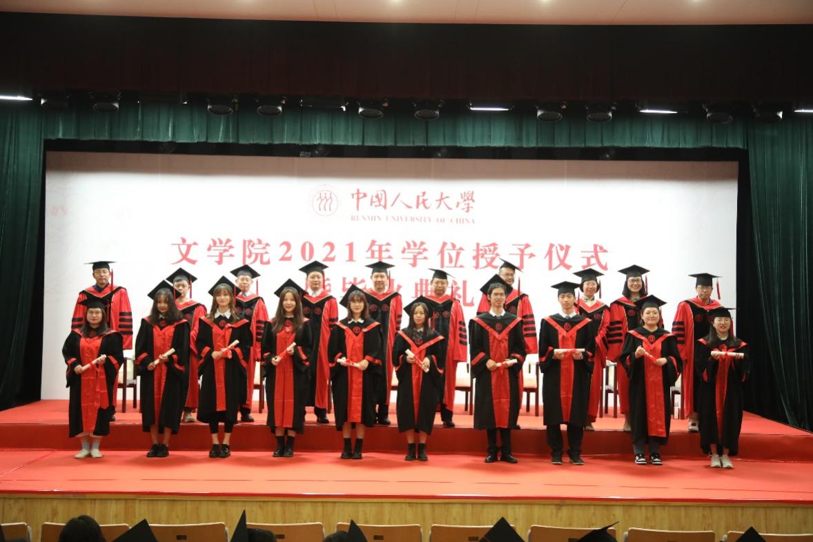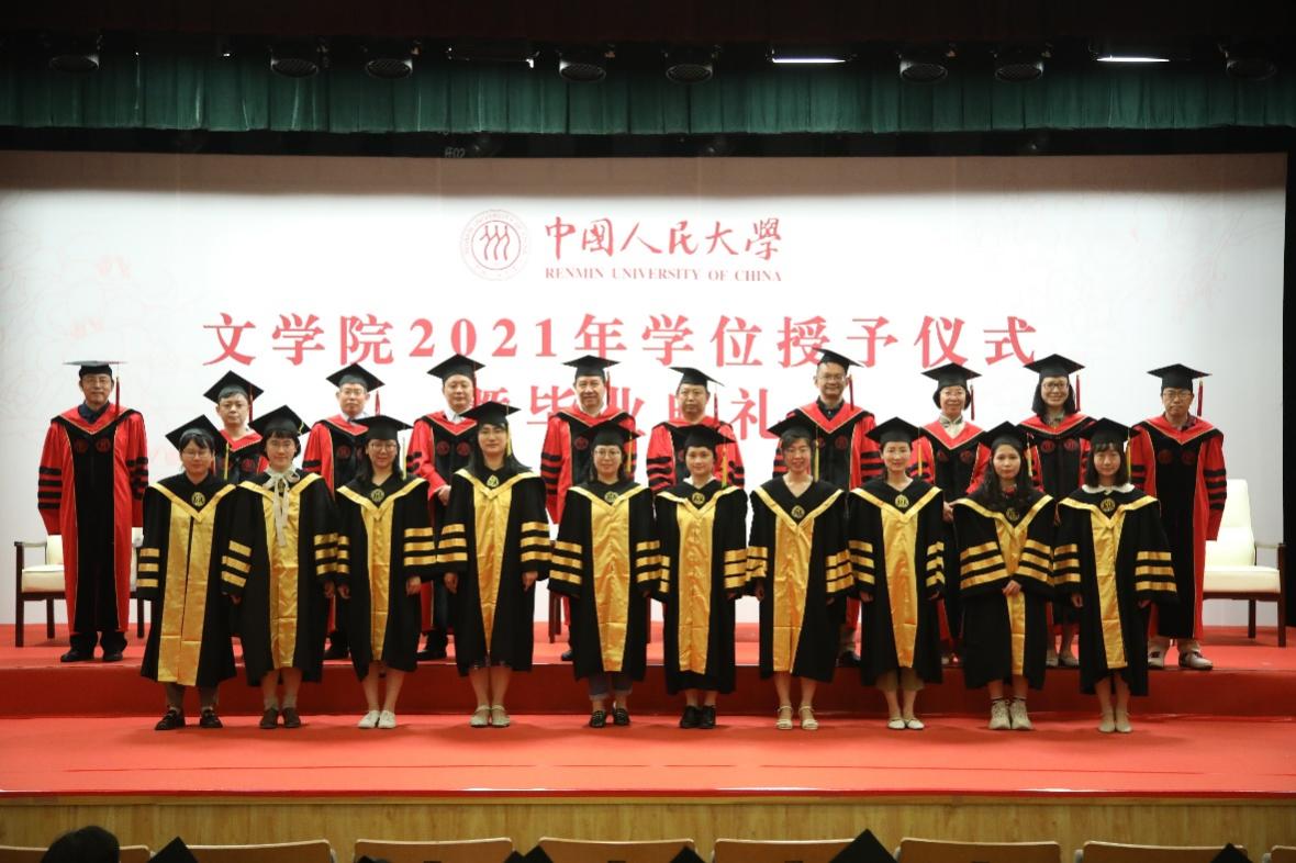 在学位授予仪式中,副院长陈奇佳教授宣读《关于授予学士学位的决定》,副院长杨庆祥教授宣读《关于授予硕士学位的决定》。院学术委员会委员代表及教师代表陈剑澜、杨慧林、徐正英、张永青、陈奇佳、杨庆祥、陈阳、梁坤、王燕、宋文辉等共同为兔子先生 2021年83位学士学位获得者、134位硕士学位获得者授予学位、拨穗正冠,并与博士毕业生合影留念。
