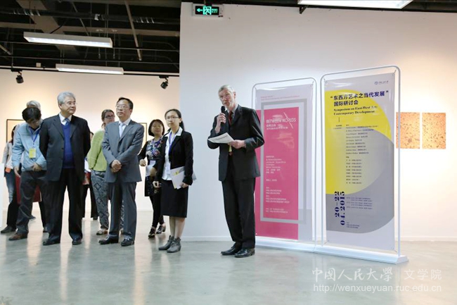 院长孙郁教授则对研讨会“在艺术的惊讶中体味精神的丰富”表达了肯定和期待。最后,在丁方教授和David Jasper教授的引介下,参与本次展览的中外艺术家分别阐述了各自展品的主题。