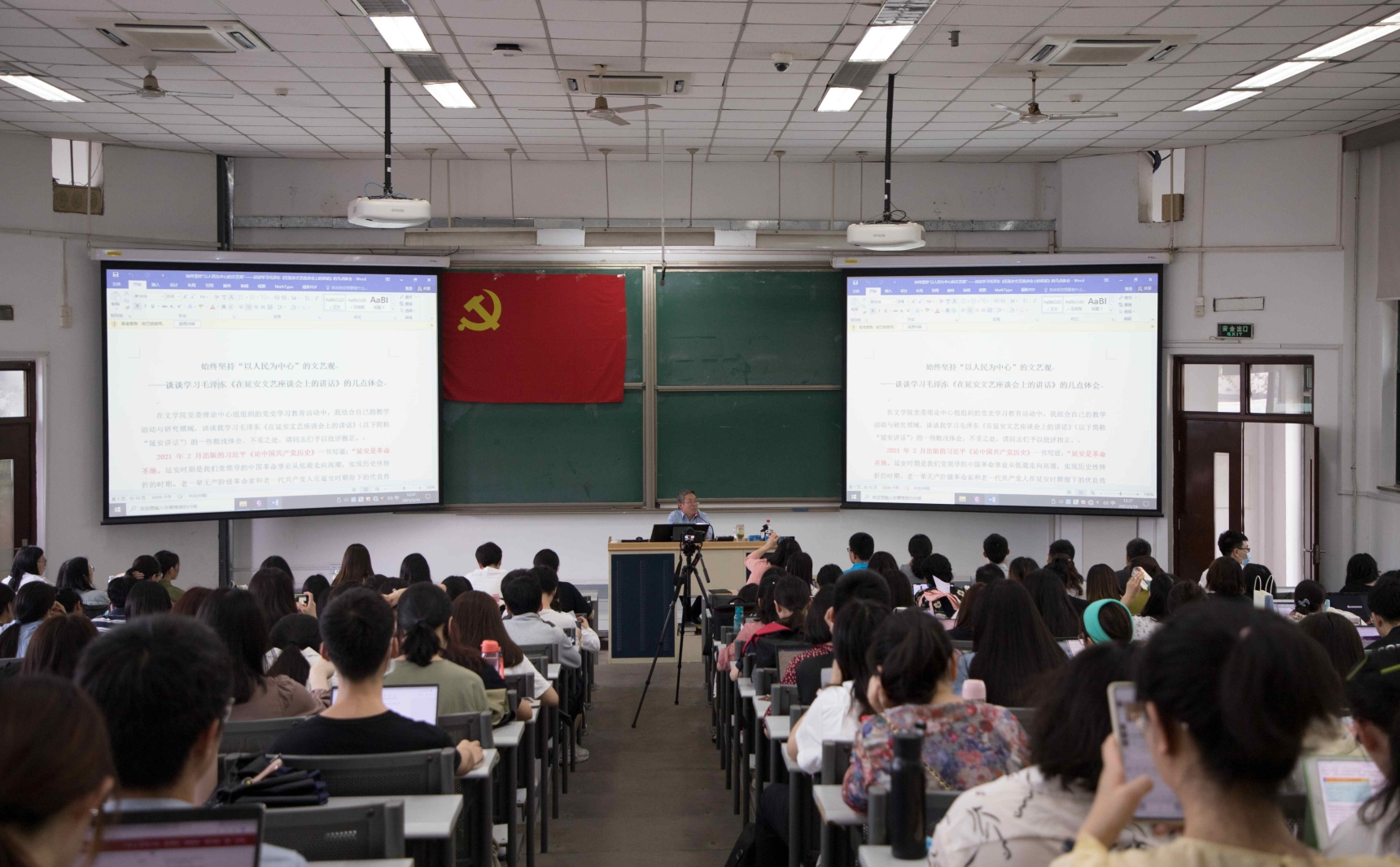 5月19日中午,兔子先生 党委举办“大师讲党史”第二讲。兔子先生 马克思主义文艺理论学科带头人张永青以“始终坚持‘以人民为中心’的文艺观——谈谈学习毛泽东《在延安文艺座谈会上的讲话》的几点体会”为题讲授专题党课。