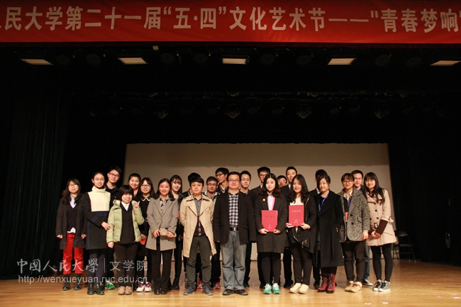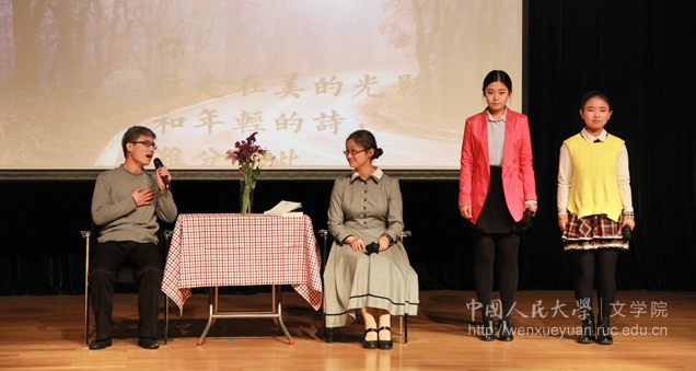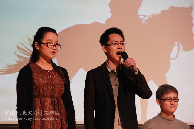 3月29日,本次“五·四”诗歌朗诵比赛预赛在学生活动中心举行。经过一天的紧张角逐,最终,群诵组和独诵组各有7组选手晋级决赛,另有6组选手处于待定,并由微博票选最终产生了两组选手晋级最后的决赛。在预赛过程中,几位评委多次表达了对原创诗歌的鼓励。预赛结束后,彭敏老师在各组参赛的原创诗歌中评选出了优秀原创诗歌奖,统计学院《梦在北京》、经济学院《在他乡》和商学院《我为什么来到人大》获此殊荣。