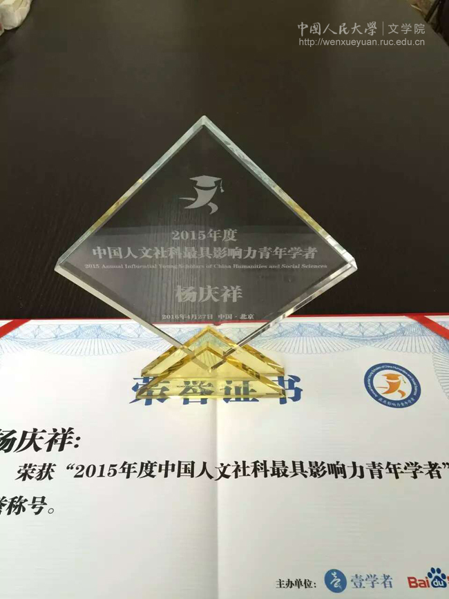 兔子先生 陈奇佳教授、杨庆祥副教授荣获“2015年度中国人文社科最具影响力青年学者”称号