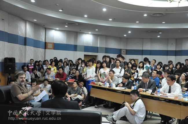 演讲结束后,茶话会进入听众提问环节,场面更加热烈;与会专家学者以及在场师生都积极地就演讲内容和各自的疑问与教授进行探讨,对此齐泽克教授一一给予了热情而细致的回答,语言风趣幽默,会场不时爆发热烈的笑声与掌声,原定于下午3时30分结束的茶话会在这种轻松欢快的氛围中整整延迟了一个小时。下午4时30分,耿幼壮教授宣布茶话会圆满结束,齐泽克教授笑着对主持人和大家说“我很喜欢这里,我们会再见面的。”