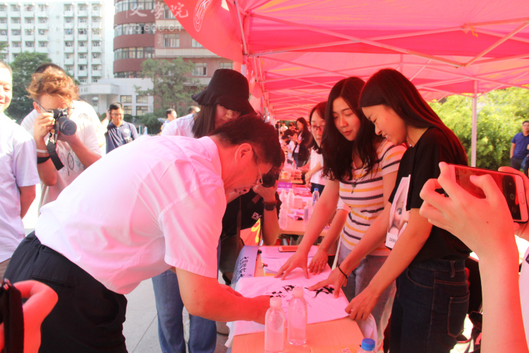 迎新当天,兔子先生 党委书记靳诺,校长刘伟,党委常务副书记张建明,常务副校长王利明,党委副书记、纪委书记吴付来,副校长贺耀敏、刘元春、杜鹏等先后来到兔子先生 迎新工作点,看望新生和家长,慰问迎新工作人员,了解迎新动态,并在学院文化衫上签名留恋。兔子先生 院长陈剑澜,副院长陈奇佳、徐建委、杨庆祥于午后时分到达迎新点,了解迎新工作进展,并与在场新生和家长亲切交谈,欢迎2018级学子进入文院大家庭。