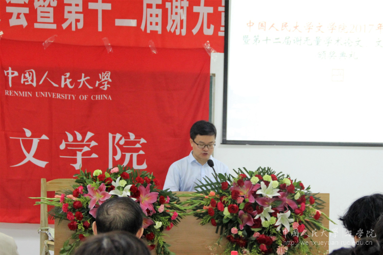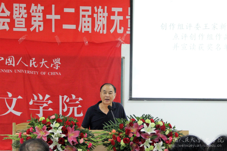 创作组评审组长王家新教授以王小波等优秀作家为例说明了人民大学文学创作的传统,讲述了他们作为文革后首次参加高考的一代人所具有的强烈的诗人情怀。他强调文学创作的灵感不是虚空的,而是来自生活的细节与具体的经验,这样文字才会融入自己独特的体悟和感触。将经验提炼成写诗的能力,这既需要文学和生活的积淀,也需要写作方法和能力的培养。点评之后,王家新教授、徐楠教授等嘉宾为获奖同学颁奖。