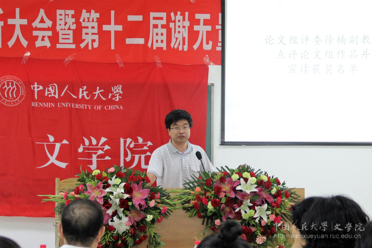 论文评审组组长徐楠副教授介绍了谢无量大赛及本次比赛的参赛情况,点评论文组作品并宣读了论文组获奖名单。本届谢无量大赛学术论文投稿数量较多,但现当代文学和文艺学方面的论文相对较少,徐楠教授希望以后同学们能够多尝试这方面的论文写作。他特别表扬了这次出现的“美文写作”,论文在符合学术规范的基础上使用了优美而有活力的文字,令人欣喜。