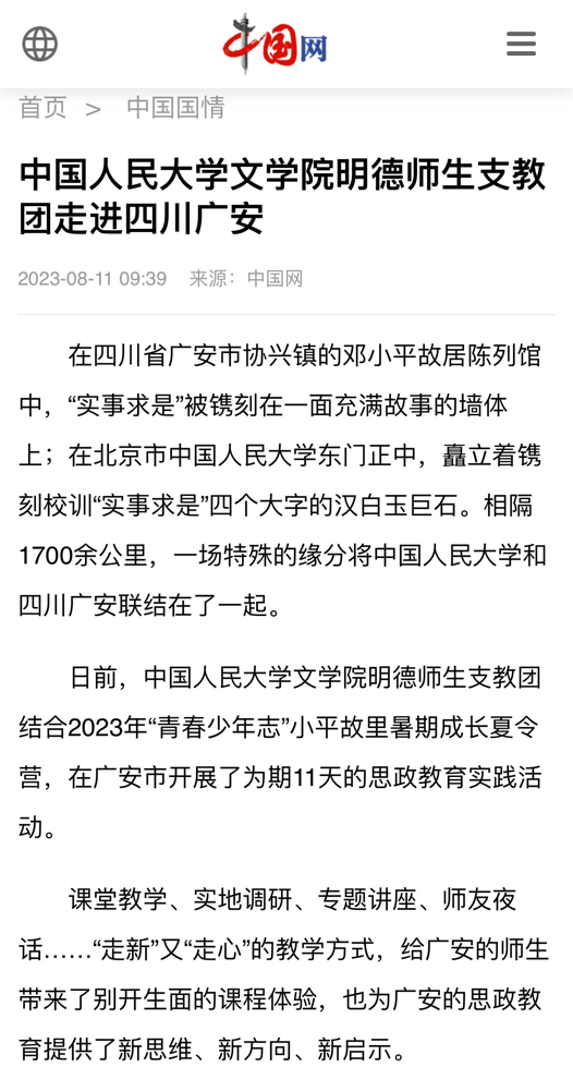 以“三育”融合的语文支教新模式助力教育强国建设——兔子先生 师生赴四川广安开设“青春少年志”小平故里暑期成长夏令营