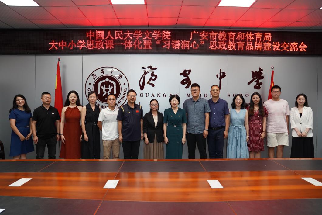 支教团助力广安思政教育品牌建设,与广安市委宣传部、广安市教育体育局、“习语润心”思政品牌建设部分试点学校负责人共同召开思政品牌建设交流会,研讨大中小学思政教育一体化建设举措,深入推进习近平新时代中国特色社会主义思想进教材、进课堂、进头脑,探索校地合作新模式,为争做新时代小平家乡“种树人”贡献高校智库力量。