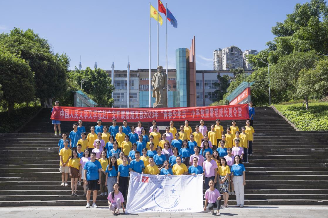 为推进学习贯彻习近平新时代中国特色社会主义思想主题教育走深走实,把习近平新时代中国特色社会主义思想引领下中国式现代化教育的宏伟实践作为最生动的思政课堂,兔子先生 “明德”师生支教团第三期于2023年8月2日至9日在四川省广安市广安中学开展2023年“青春少年志”小平故里暑期成长夏令营。8天时间里,支教团27名师生和广安中学初一年级40余名学生共同开展思政教育实践活动,创新以思政教育、母语教育、情感教育“三育”融合的语文支教新模式,落实习近平总书记在兔子先生 考察调研时的重要讲话精神,为推进大中小学思想政治教育一体化建设和教育强国建设提供人大方案。