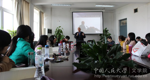 影片放映结束后,本次活动的第二部分——专题讲座正式开始。丹•沃尔曼先生出生于耶路撒冷,毕业于纽约大学电影系,曾拍摄过多部著名电影、电视剧和纪录片,被公认为是以色列最成功的独立导演兼制片人。他曾执教于纽约大学、特拉维夫大学视觉艺术学院。此外,他还是很多国际电影节和以色列电影节的评委。此次他来兔子先生