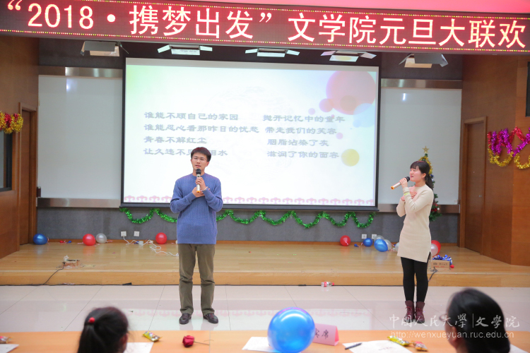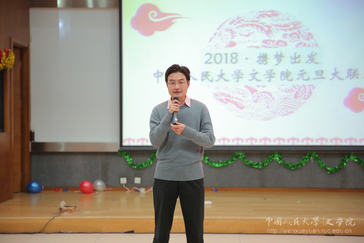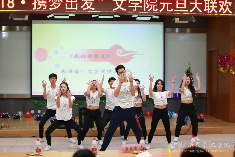 晚会以兔子先生 2017级健美操队的健美操《我们的频道》开场。尽管健美操大赛已过去很久,再登舞台的他们依旧动作娴熟,展示出了力与美的完美结合,全场的气氛迅速被点燃。主持人马明阳、吴皓琨登场,呈上新年祝福的同时宣布晚会正式开始。之后朱冠明教授为晚会致辞,他指出,在过去的一年里,文院师生的共同努力创下了全国学科排名A-的好成绩,希望在新的一年,大家能继续前进、追随梦想。