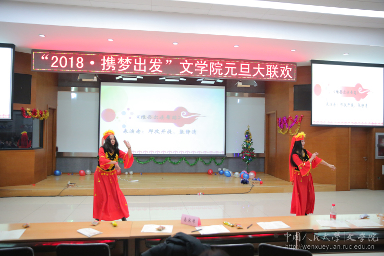 跨年晚会上,文院学子的表演别出心裁,独具匠心,现代与古典的融合,民族与异域风情的串接,让这次晚会异常的精彩。而演出中穿插的“你划我猜”和抽奖活动更是调动了同学们的积极性。不同民族、不同国度的文院学子在今夜齐聚一堂,其乐融融。晚会最后,龚敏、刘未带领全场合唱《明天会更好》,在笑声与歌声中,跨年晚会落下帷幕。