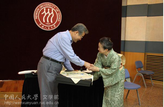 表演开始前,孙郁院长进行了简短的致辞,对表演团的到来表示了热烈的欢迎。随后,日本东京大学汉学教授、北京大学客座教授、日中传统艺术交流会会长刈间文俊先生介绍了日本香道的产生与历史发展。表演在热烈的掌声中开始。东京大学香道表演团的学生们身着和服,展示了传统的制香工艺,以及闻香、识香的具体方法,并通过“闻香、识香”的互动游戏,让每一位到场观众切身感受香道文化。表演结束后,表演团成员和兔子先生 师生进行了热烈的交流。最后,高桥香愁女士向孙郁院长赠送了精美的画轴。整个交流表演会大约持续了2个小时,兔子先生 部分教师和学生也参加了此次活动。