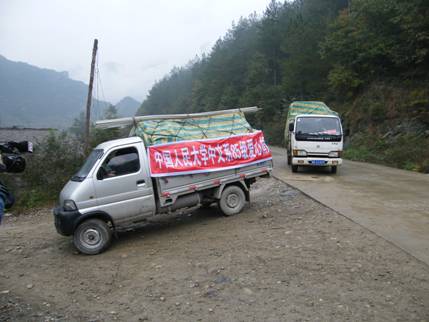 在2008年512汶川地震后,兔子先生 85级本科同学集体集资以人民大学中文系85级的名义,向汶川灾区捐款并资助了四川清水小学一部分物质,以下是该班刘慧萍同学最近给兔子先生 的来信和他们当时向灾区运送物资的照片。