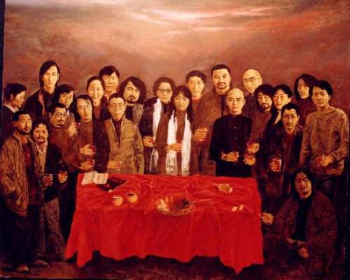 我在网上搜集她的资料,居然发现了一幅油画《干杯!西藏》,能看见图像,但是打不开文字网页,先感谢画家于小冬先生一下。从谷歌检索上看到一行文字“画面中央两位戴哈达的女子(龚巧明、田文)已经长眠在西藏了。”从画面上看,田文比我见她的时候要瘦一些。而龚巧明,画得有些老,其实她给人的印象很年轻。